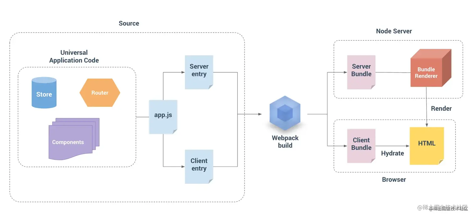 - 在客户端进行hydrate,使用js对dom进行事件绑定,让页面变得可交互