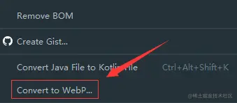 1.1选中图片或者含有图片的文件夹 右键选择Convert toWebP..