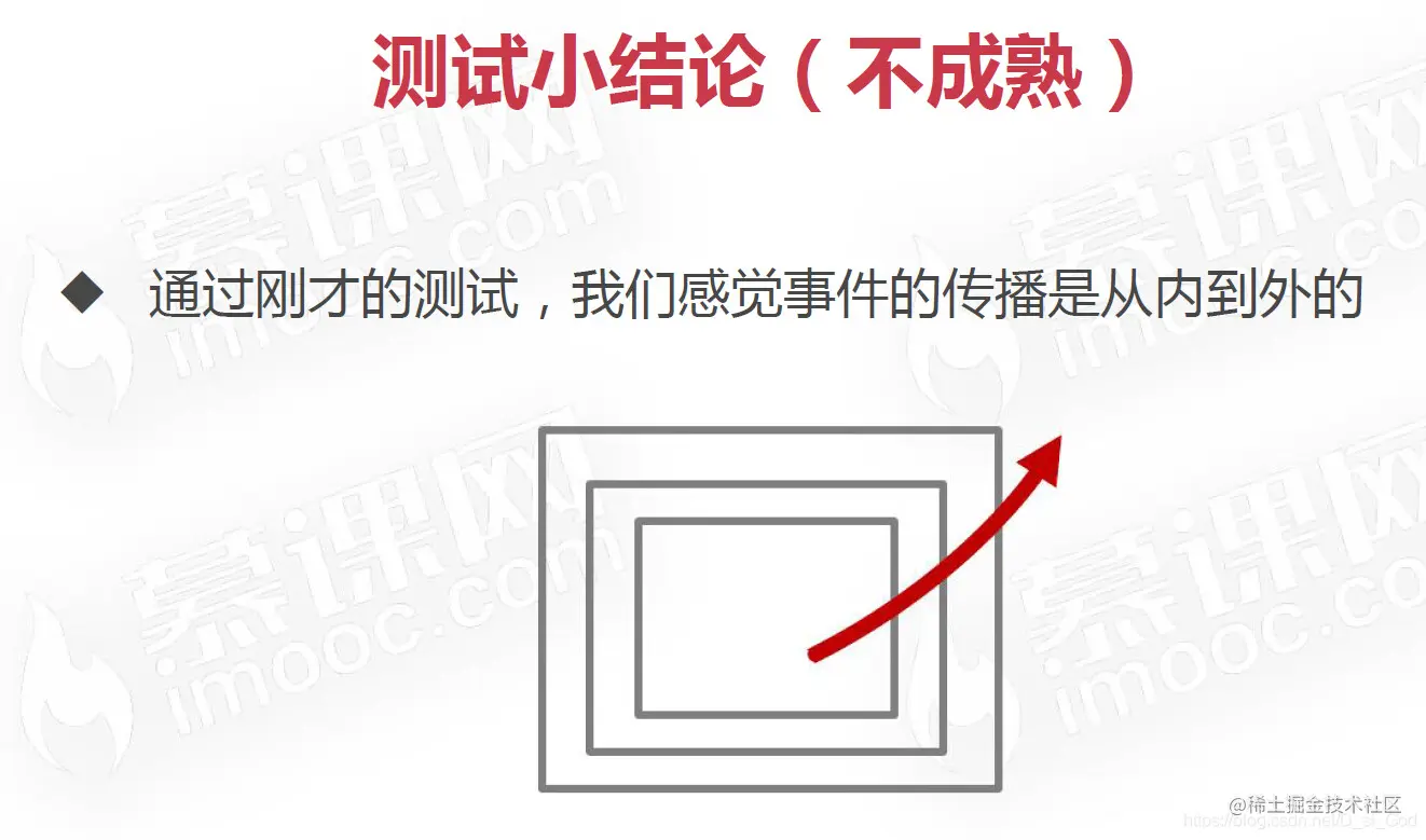 事件冒泡概念: 当一个元素的事件被触发时,同样的事件将会在该元素的所有祖先元素中依次被触发。这一过程被称为事件冒泡 简单理解:当一个元素触发事件后,会依次向上调用所有父级元素的同名事件 事件冒泡是默认存在的