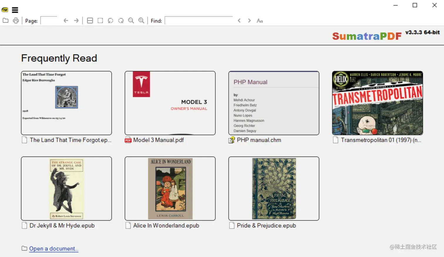 2、sumatrapdf:免费小巧的开源 PDF 阅读器。这是一款体积小、占用内存少、启动速度快的 Windows PDF 阅读工具,拥有日常所需的所有功能和简约大方的界面,这一切不多不少刚刚好。
