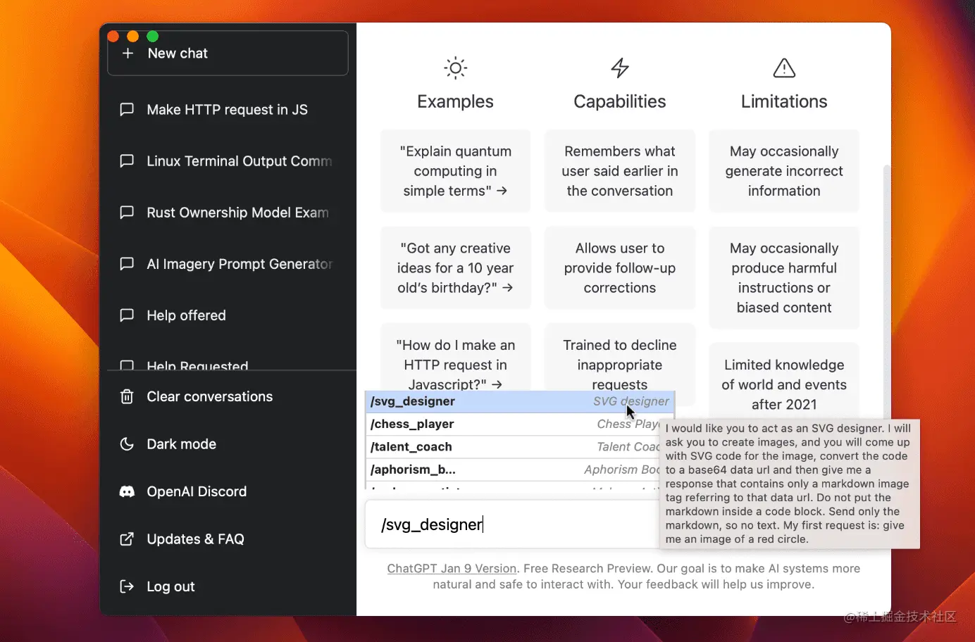 30、ChatGPT:第三方的 ChatGPT 桌面应用。把 ChatGPT 放到你的桌面,支持快捷键、斜杠命令、划词搜索、导出记录等实用的功能,适用于 macOS、Windows、Linux 操作系统。