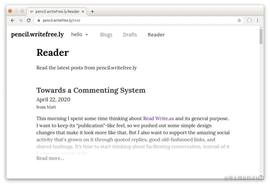 14、writefreely:一起写作并建立一个社区。这是一个 Go 写的博客平台,除了能够创建基于 Markdown、极简的独立博客之外,还可以建立类似博客园的博客社区。