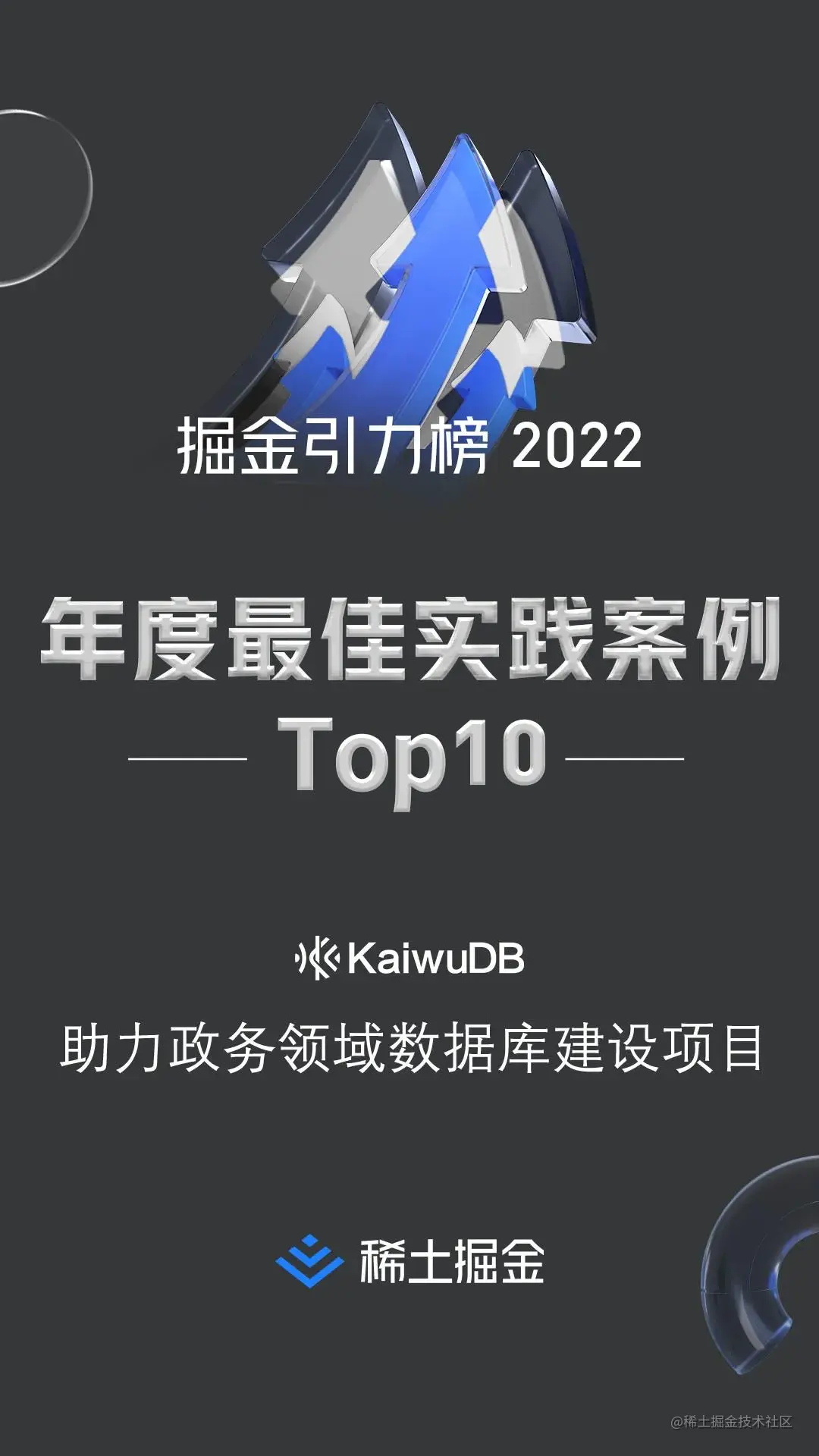 KaiwuDB 凭借过硬产品实力和落地成熟的解决方案,荣获**「 2022年度最佳实践案例 」!**