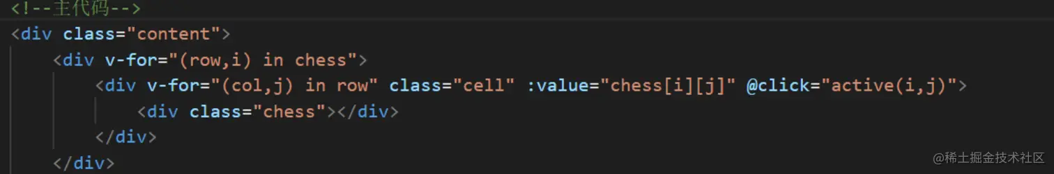 <div v-for="(col,j) in row" class="cell" :value="chess[i][j]" @click="active(i,j)">