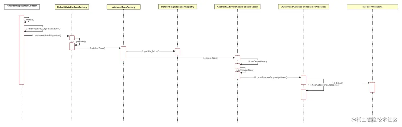 下面是spring容器实现@Autowired自动注入的时序图。