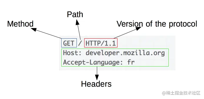 - 要获取的资源的路径,通常是上下文中就很明显的元素资源的 URL,它没有 protocol(http://),domain(developer.mozilla.org),或是 TCP 的 port (en-US)(HTTP 一般在 80 端口)。