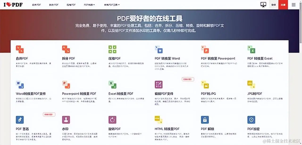 同样是工具网站,iLovePDF就不一样了,它聚焦于PDF这一件事情上,目前网站上提供了22个PDF处理小工具,像是合并、拆分、压缩PDF,PDF转换至Word、PowerPoint等,是一个非常好用的PDF处理网站,能够帮你解决大部分PDF文档问题。
