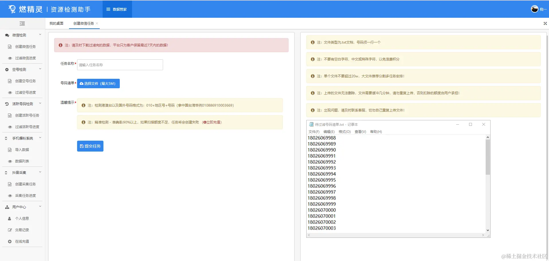 燃精灵支持全球范围内所有手机号码的检测,所有手机号码是否注册过微信,只要放到这个系统里一筛就知道,推荐码的话填写2101即可。