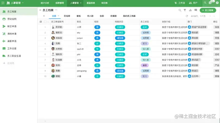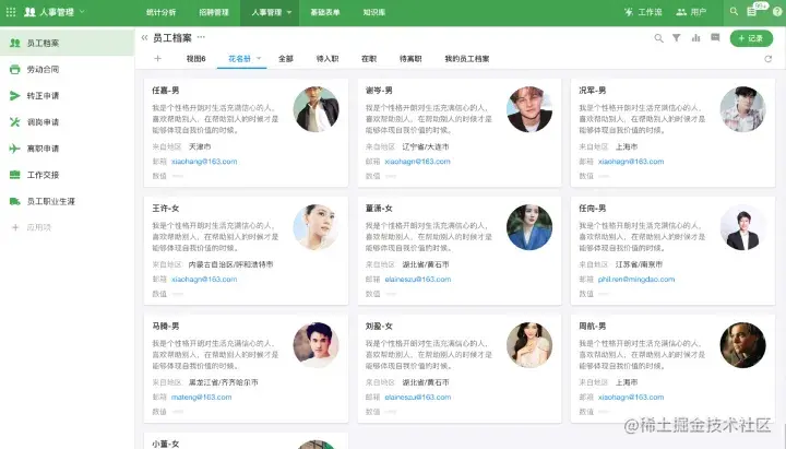 范例:画廊视图-员工花名册