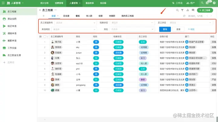 范例:表格视图-员工档案