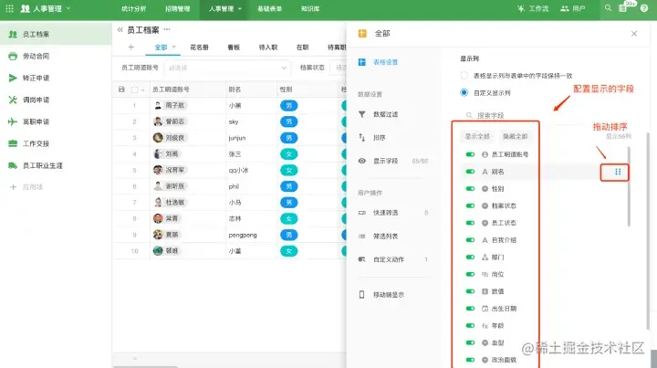 合理配置视图的字段显隐和排序