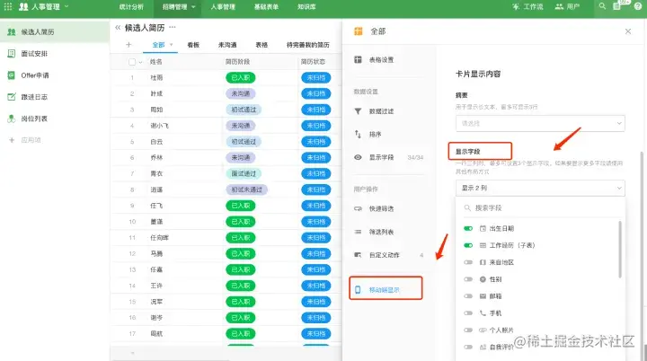 PC端配置好的应用会自适应在移动端生成,受限于移动端的设备尺寸,视图和自定义页面的默认呈现可能不是最优,视图记录展示的字段会变少。因此,需要展示的字段最好单独配置,通过显示调整让移动端的信息以最优方式展现出来。