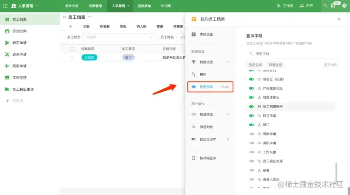 不同视图下可以分别配置不同的字段显隐,如果记录层面不需要看到的字段,可配置隐藏,让记录详情页看起来更简洁。