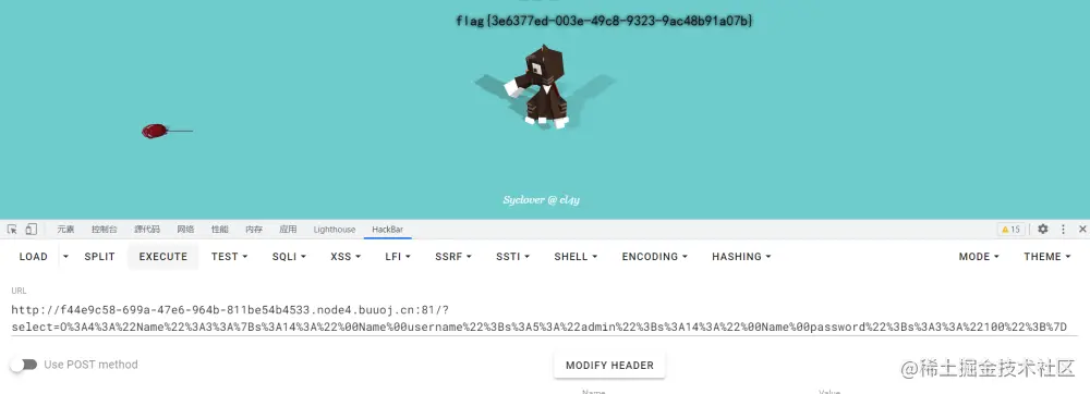 <?php include 'class.php'; $select = $_GET['select']; $res=unserialize(@$select);<?php include 'flag.php'; error_reporting(0); class Name{ private $username = 'nonono'; private $password = 'yesyes'; public function __construct($username,$password){ $this->username = $username; $this->password = $password; } function __wakeup(){ $this->username = 'guest'; } function __destruct(){ if ($this->password != 100) { echo "</br>NO!!!hacker!!!</br>"; echo "You name is: "; echo $this->username;echo "</br>"; echo "You password is: "; echo $this->password;echo "</br>"; die(); } if ($this->username === 'admin') { global $flag; echo $flag; }else{ echo "</br>hello my friend~~</br>sorry i can't give you the flag!"; die(); } } }