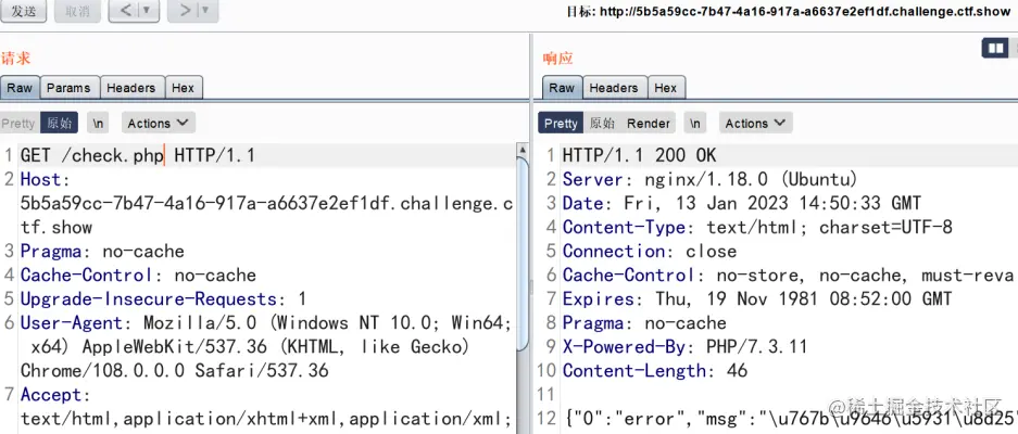 然后发包,接着访问check.php 实现反序列化shell的写入