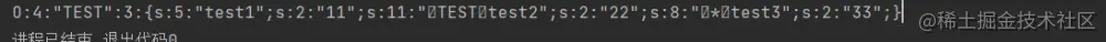 <?php class TEST{ public $test1="11"; private $test2="22"; protected $test3="33"; public function test4() { echo $this->test1; } } $a=new TEST(); echo serialize($a); //O:4:"TEST":3:{s:5:"test1";s:2:"11";s:11:" TEST test2";s:2:"22";s:8:" * test3";s:2:"33";}