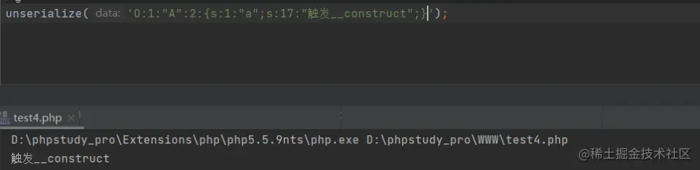 O:1:"A":1:{s:1:"a";s:17:"触发__construct";}先正常序列化一下