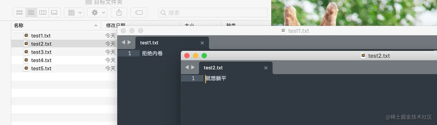 最后的整个文件只保存了test5.txt的内容。