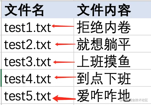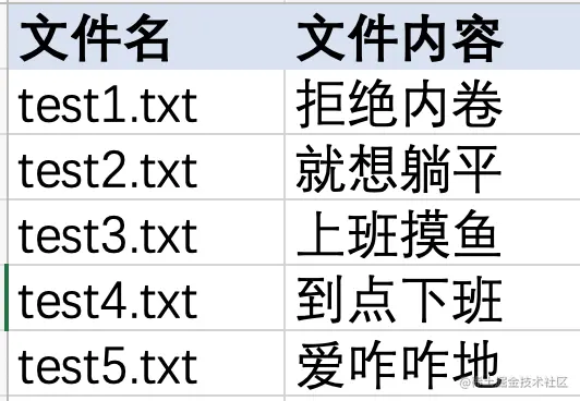 ****案例说明: 有一个excel文档,一列记录的是文件名,另一列记录的是文件中要填充的文件内容。需要读取对应的文件内容,存入对应的表名中。