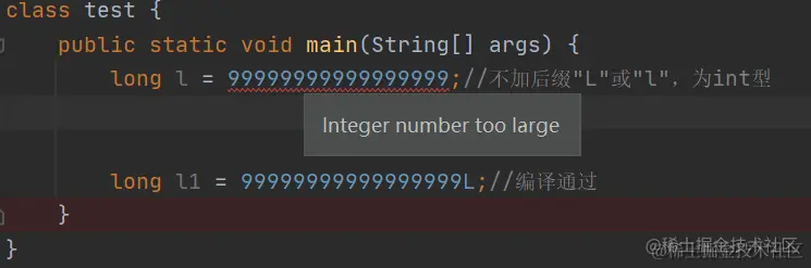 Java声明的整型常量默认为int型,声明long型常量的话必须在后面加 "l"或"L"