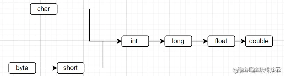 在进行运算时,精度小的类型自动转化为精度大的类型,转换排序如下图