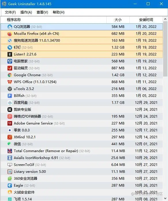 一款可以卸载软件的软件,堪称流氓软件的克星,有什么想要卸载的软件,直接左键双击即可开始卸载程序,卸载完成后还会扫描注册表残留和安装目录,残留在系统内的文件可以完全删除