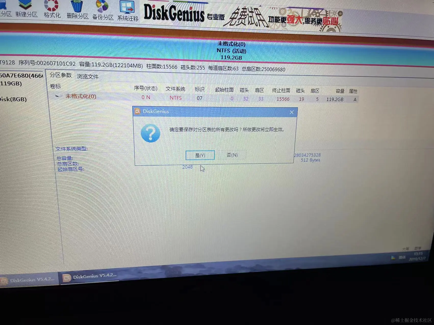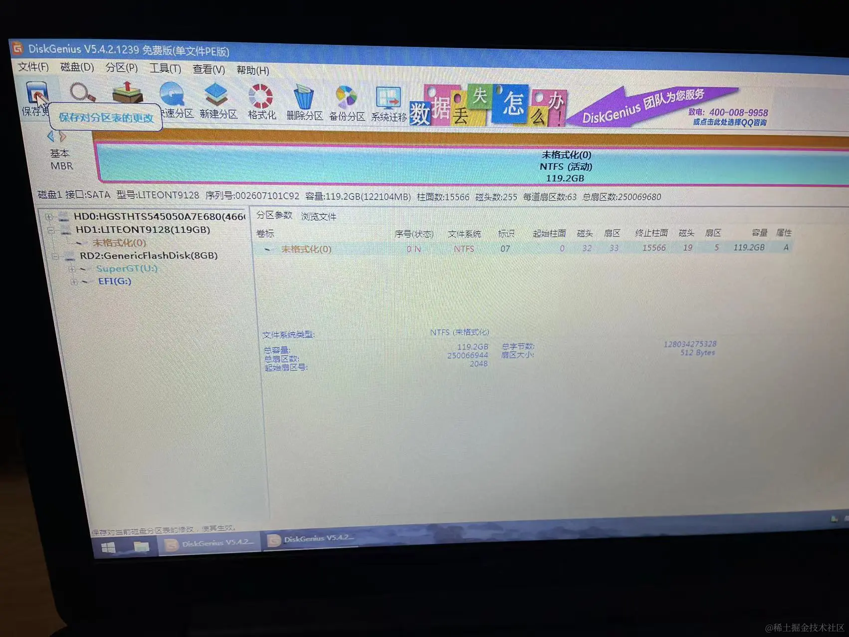 把这个119的固态硬盘选中,然后点击保存更改