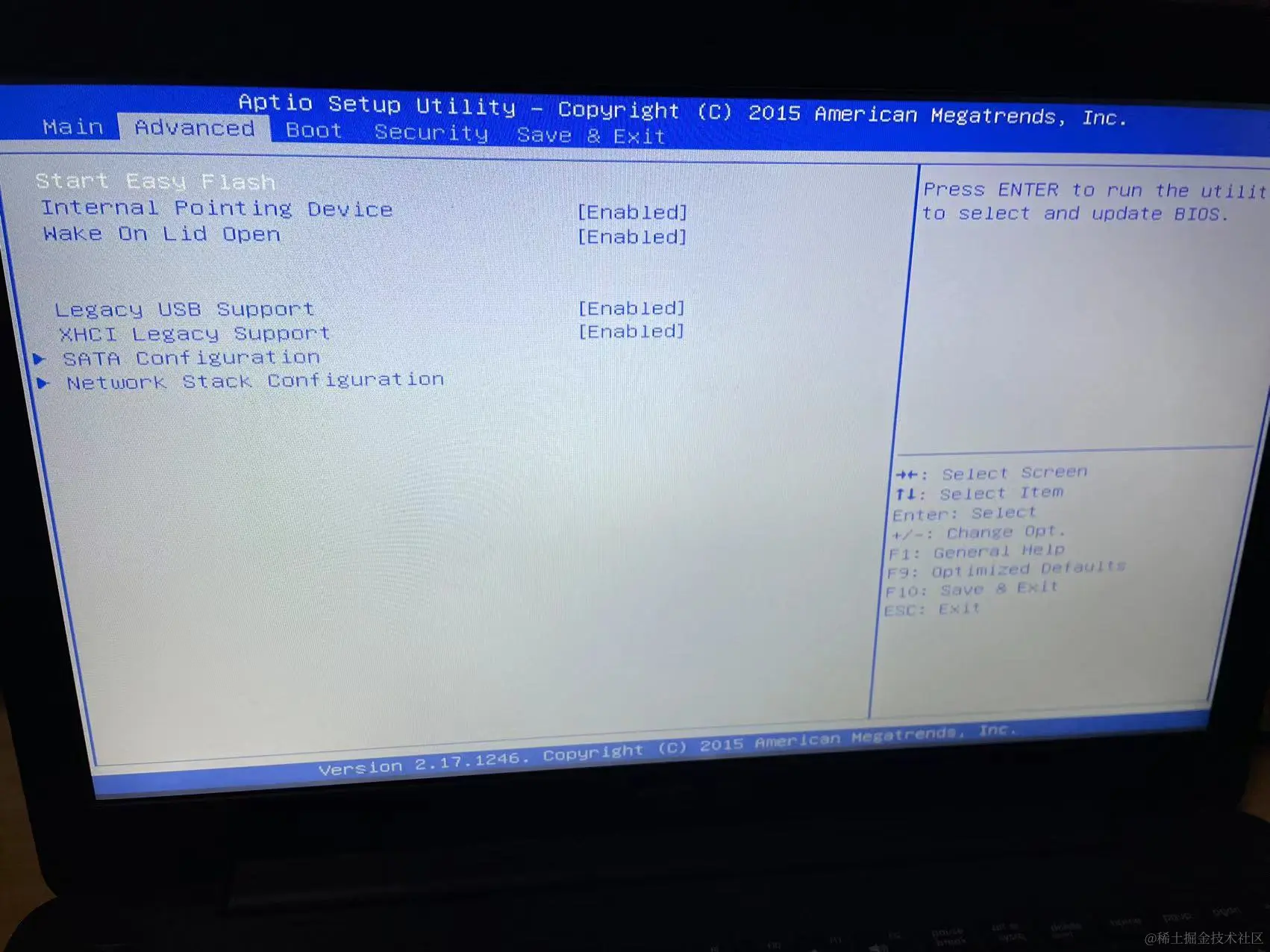 进去以后呢,我们按上下左右调节键进入Advanced把Legacy USB Support设置成Enabled。