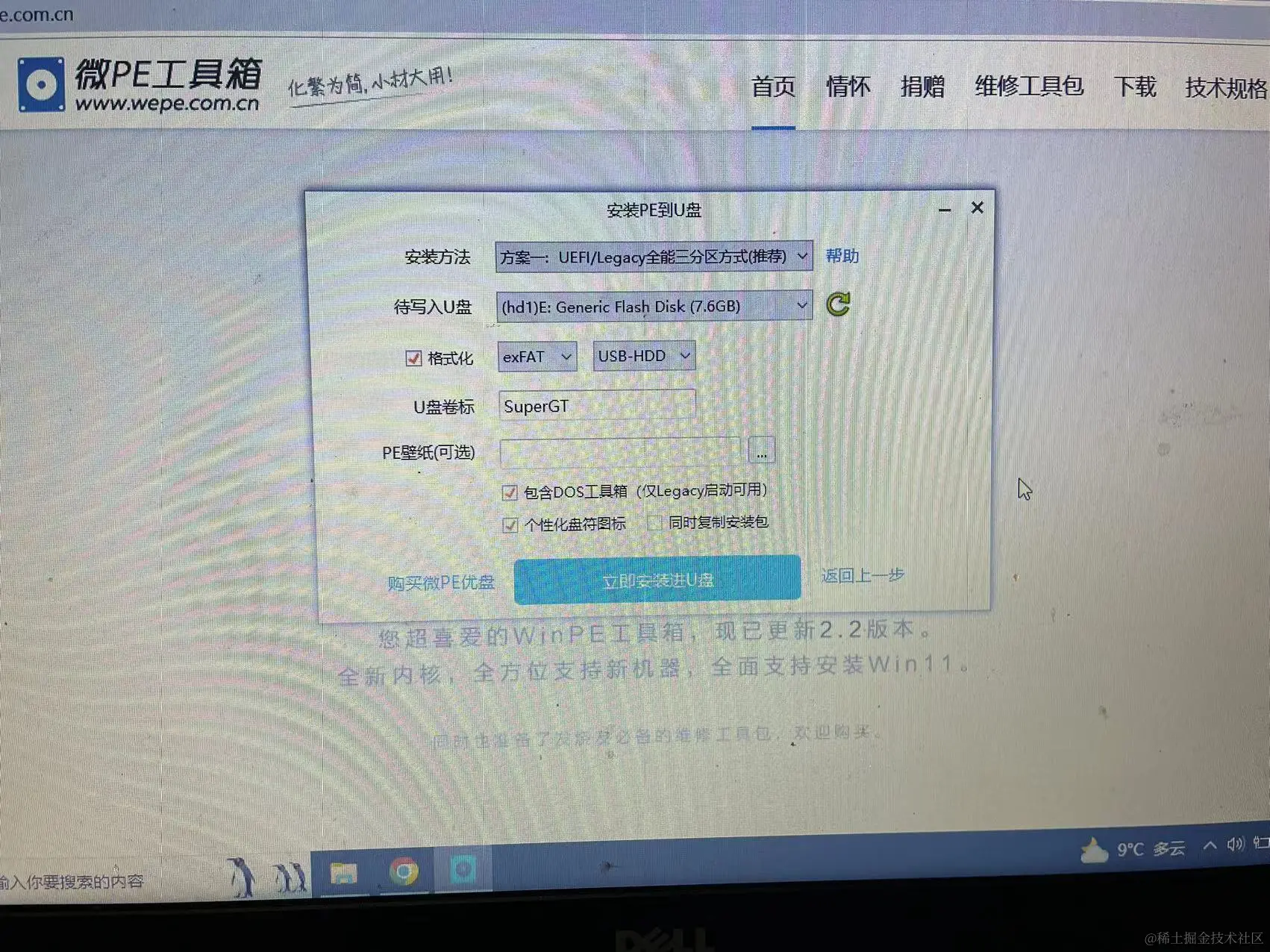 第三步,选择要制作的U盘,其它的照着抄就好了,我就不念了,抄完以后我们点击“立即安装进U盘”。
