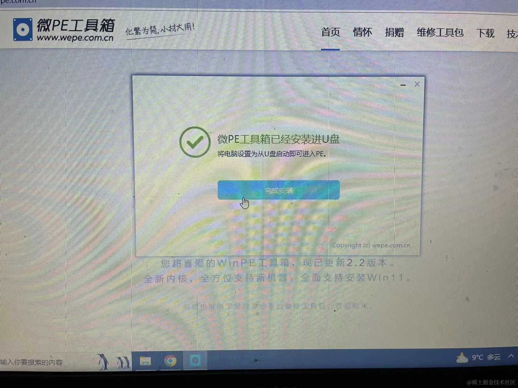 等这个进度条满了后,重启电脑,然后拔掉U盘即可。