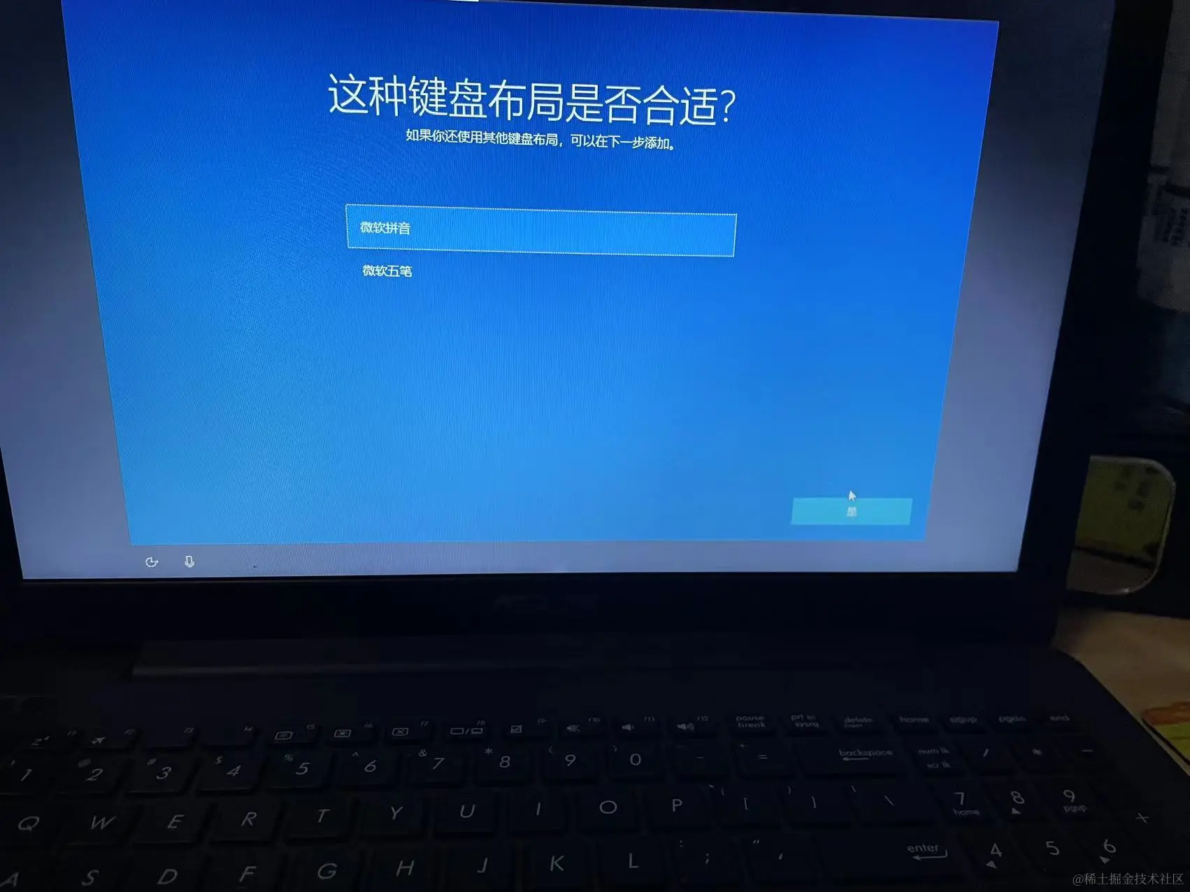 选“微软拼音”,点击“是"进入下一步。