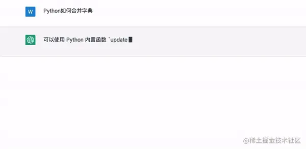 假设我们忘记了如何将两个字典合并。 以下是 ChatGPT 可以如何帮助你的部分。