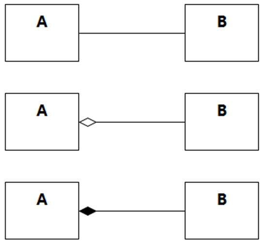 如果用类图来表达UML中的关联、聚合、组合三个概念之间的关系,以下最合适的是: