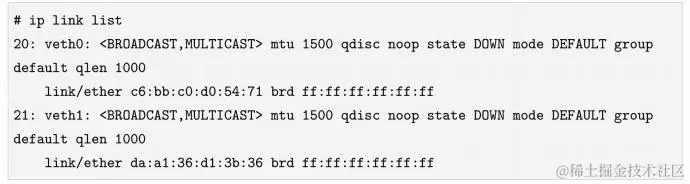 创建的veth pair在主机上表现为两块网卡,我们可以通过ip link命令查看:
