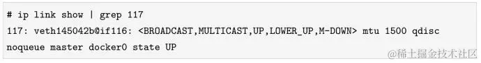 当host执行下面的命令时,可以看到对应117的veth网卡是哪一个,这样就得到了容器和veth pair的关系。