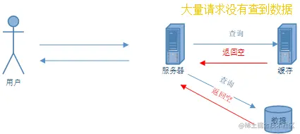 缓存穿透是指当用户在查询一条数据的时候,而此时数据库和缓存却没有关于这条数据的任何记录,而这条数据在缓存中没找到就会向数据库请求获取数据。用户拿不到数据时,就会一直发请求,查询数据库,这样会对数据库的访问造成很大的压力。