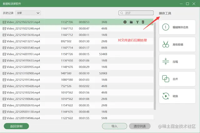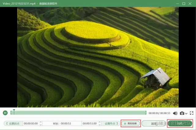 **步骤4.**录制完成后,在预览页面,您可以对视频进行预览;阅览后可以对视频进行简单剪辑或者高级剪辑,然后点击【完成】按钮,接着进入【录制历史】页面对录屏文件进行后期处理。