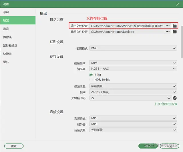 上文提到PPT有自带的录屏功能,使用专业的录屏软件也可以录制视频。那PPT录制视频保存在哪?**1)**使用PPT自带的录屏功能录制PPT,录制完成后,视频会出现在PPT文档中,您还可以把他保存到电脑文件夹,一般默认是在C盘;**2)**在使用专业的录屏工具——数据蛙录屏软件录制PPT时,您可以在软件的【设置】页面找到视频存放的路径,或者修改路径。