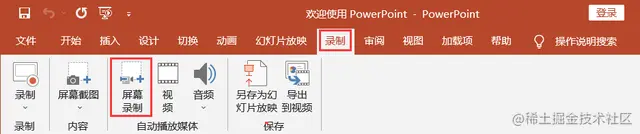 方法1:使用PPT自带的录屏功能录制PPT文档