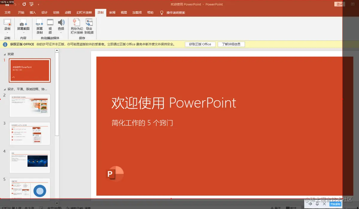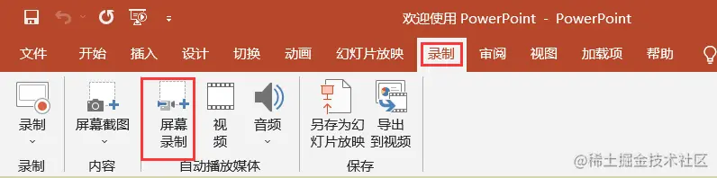 方法二、PPT自带录屏功能