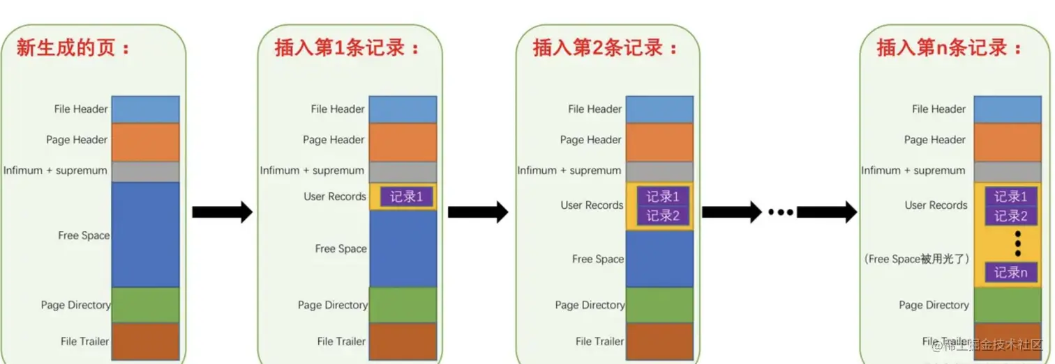 在数据页中,数据也是按照主键从小到大排序的,并且后一个页的最小记录会比上一个页的最大记录大,总体来说,这些页的数据是递增的。