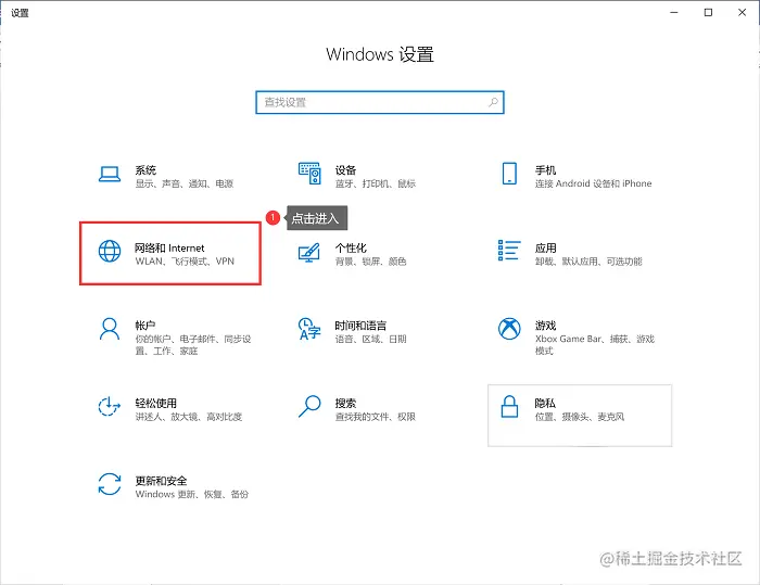 **步骤1:**首先使用快捷键【win+i】打开“Windows设置”界面,接着找到“网络和Internet”的选项,点击进入。