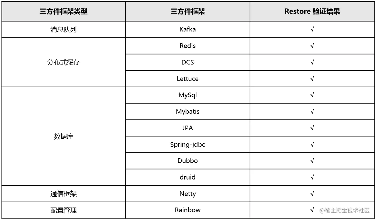 Restore Hook当前已支持大部分主流第三方组件的重连,详见图7: