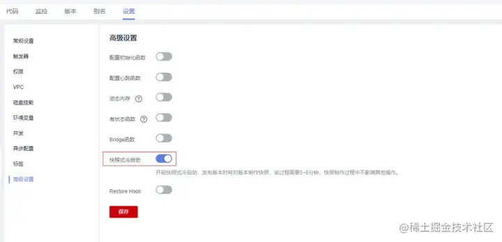 2、(可选)配置Restore Hook,并在函数代码中实现对应的Hook逻辑