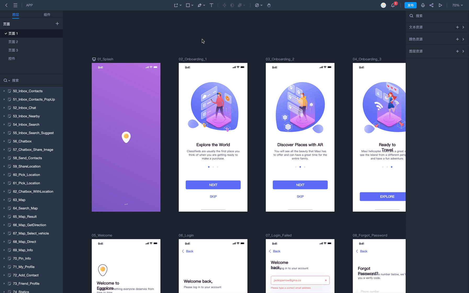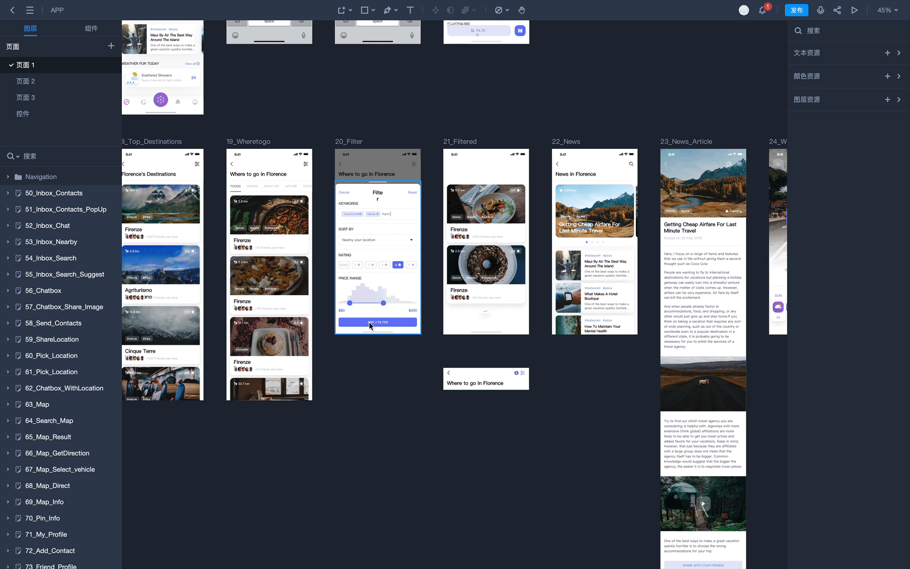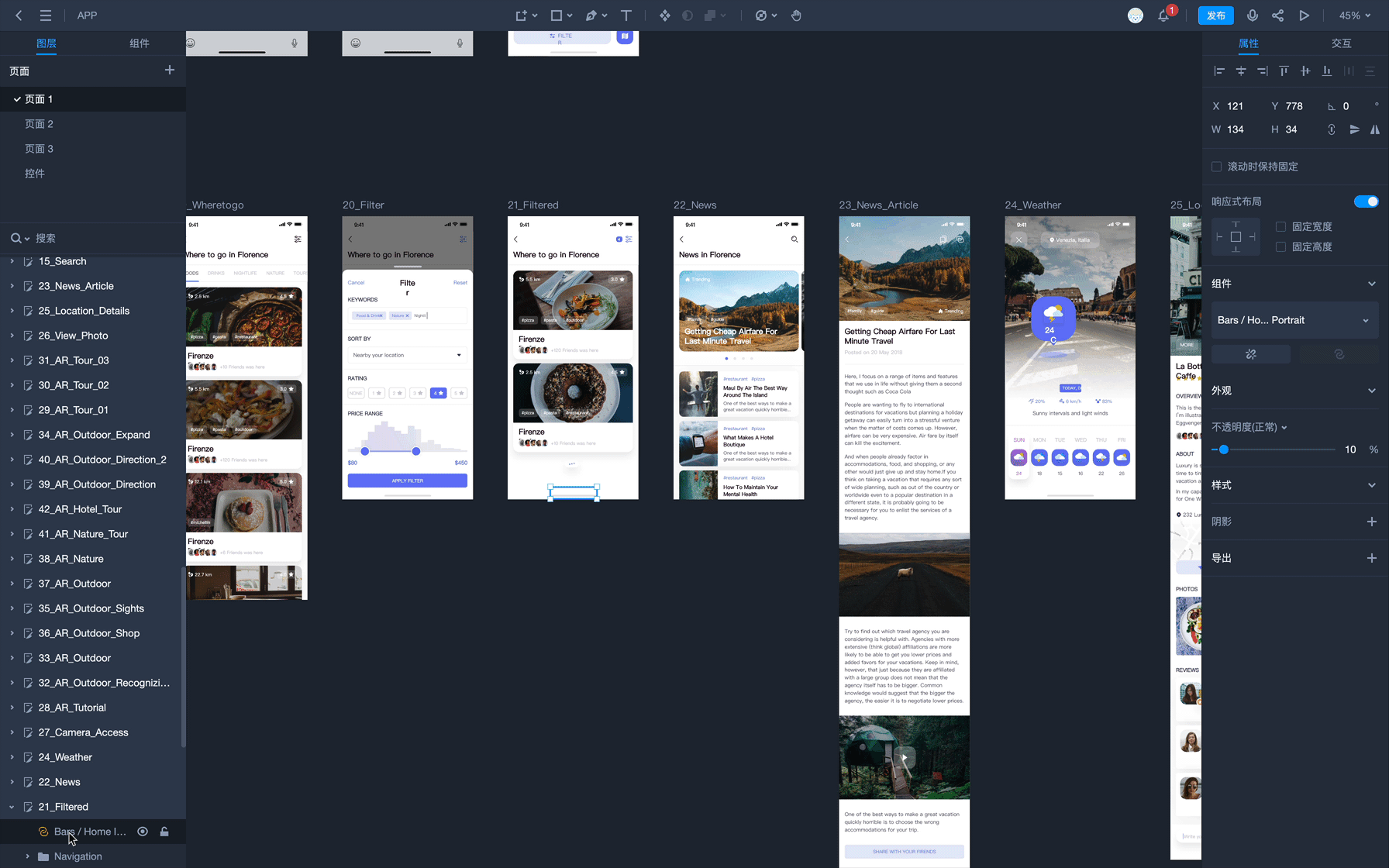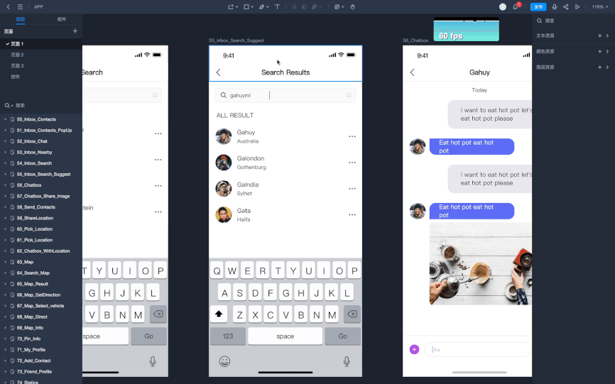 摹客DT不仅在图层树上提供了搜索功能,也支持对页面内“隐藏”、“锁定”的图层进行一键筛选,无需依赖三方插件,便可以快速定位符合条件的图层,真心好用。