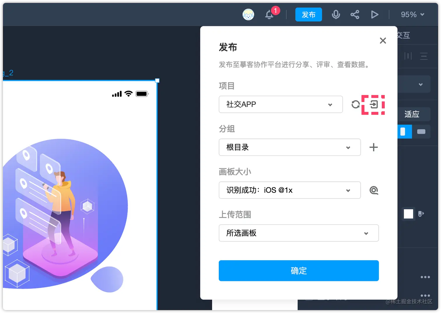 6、发布设计稿至摹客协作平台后,可快速打开协作项目