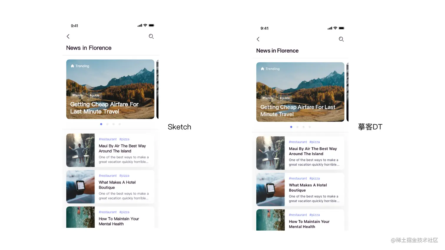 使用Sketch设计Banner时,我经常通过为图片增加一层圆角矩形的蒙版实现圆角效果,整个过程非常耗时。但在摹客DT中,我们可以选中图片后直接在属性面板处通过拉杆设置圆角,这个功能对于经常做Banner设计的我来说真的是福音,操作简单不说,效果完美符合预期。