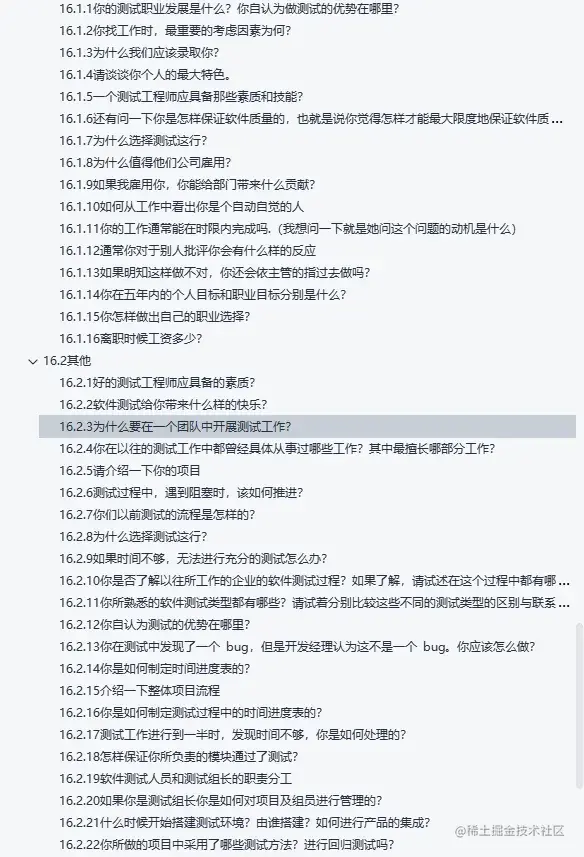 鉴于目前测试就业越来越严峻,内卷也成了测试领域的代名词了。我的一个HR朋友告诉我,由于门槛较低,现在普通测试岗(偏功能)的投递比已经将近100,也就是一个岗位差不多有百分简历投进来。 所以现在还想从事软件测试行业的小伙伴们,想要心仪的工作,要多努力学习哟。小月给大家整理了2023最新软件测试八股文,大家刷起来哟 篇幅所限本文就只贴一下题目了,答案的话我整理的一本《软件测试面试八股文》PDF里都有