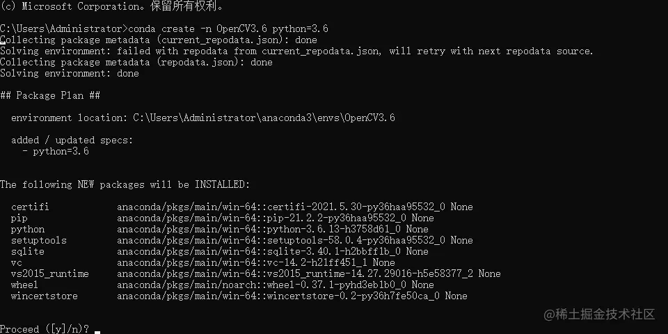 conda create -n OpenCV3.6 python=3.6 # 通过 anaconda 创建虚拟环境
