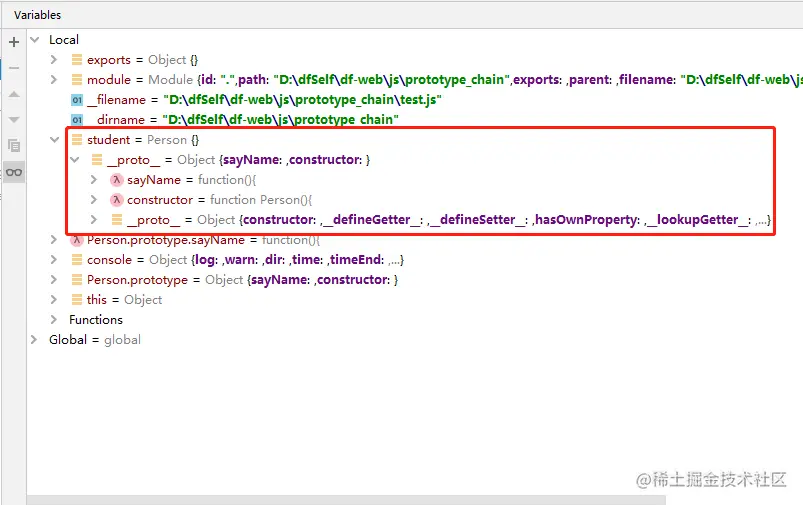每个实例对象都被添加了隐式原型__proto__,指向构造函数的原型对象
